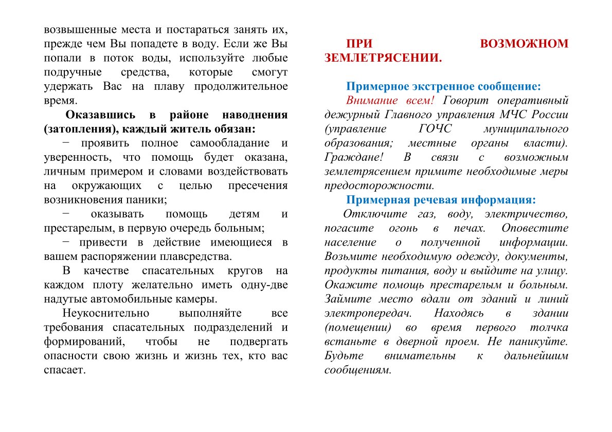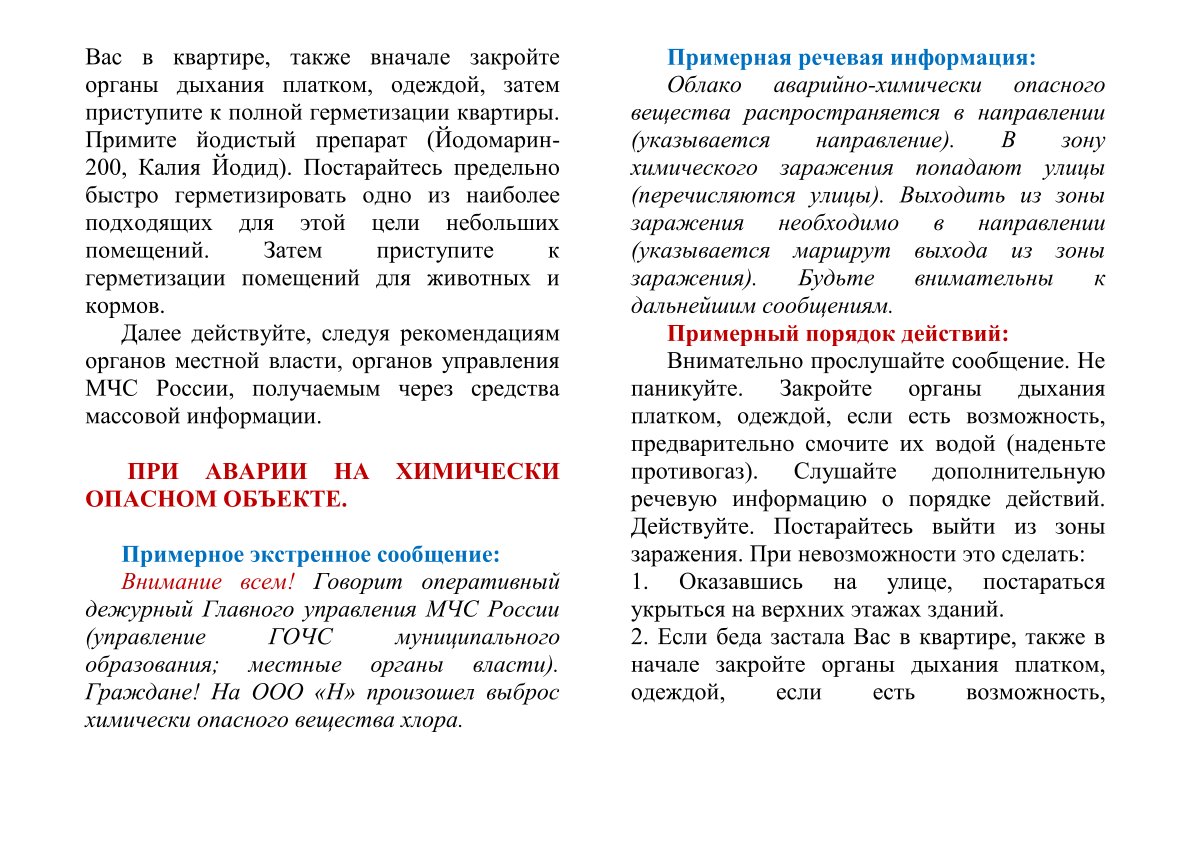 Действия населения по сигналам оповещения