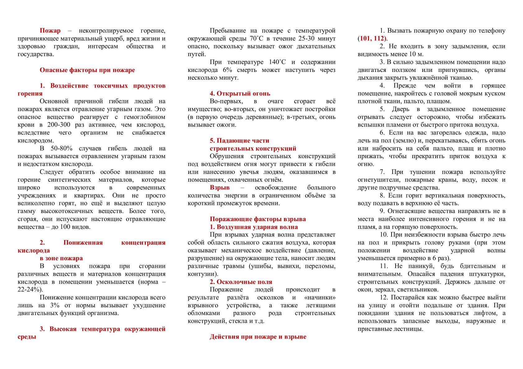 Действия при пожаре, взрыве в школе